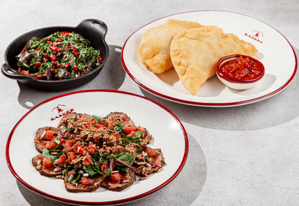 Бренд-шеф Мамия Джоджуа соединил три легендарных блюда ресторана с тремя новыми позициями. Из прошлого вернулись салат с нежной говяжьей вырезкой и пикантными джонджоли, ароматный кучмачи из куриной печени с грузинскими специями и хрустящие чебуреки с сочной бараниной в фирменном тесте.